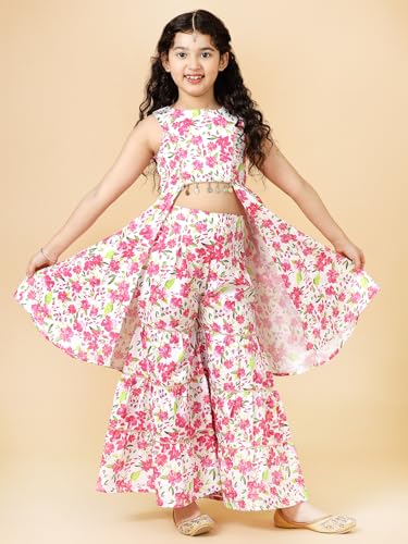 A.T.U.N. (ALL THINGS UBER NICE) Girls Fuchsia Floral Printed Tier Sharara Set