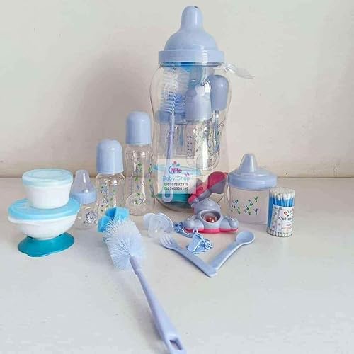 Baby Feeding Set for Newborn (12 pcs Set),Milk Feeding Bottle for Babies,Different Size of Milk Bottle,Baby Ear Buds,Feeder Spoon & Fork,Water Bottle,Baby Food Bowl,Baby Shower Gifts