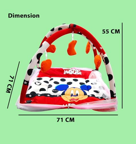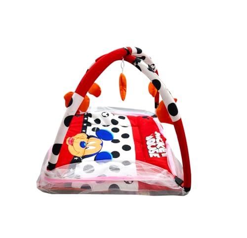 Baby Play Gym Wih Mosquito Net with Soft Cotton Pillow (Red & White)