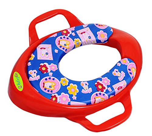 BabyGo Cushioned Potty Training Seat for Kids | Comfortable Padded Toilet Seat with Handles & Splash Guard | Portable, Non-Slip, Easy-to-Clean Potty Chair for Boys & Girls (Red)