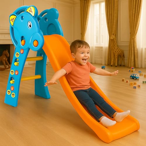 - [AGE SUITABILITY & WEIGHT CAPACITY]: Designed for kids aged 1 to 6 years, this durable kids slide can safely hold up to 25 kg. Whether it’s playtime in the living room or fun in the backyard, this indoor outdoor toddler slide adapts easily. Its sturdy build ensures daily fun while promoting healthy activity and movement.