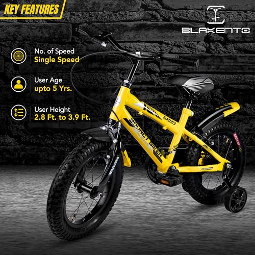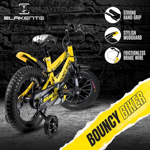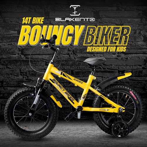 BLAKENTO Kids Cycle for Girls and Boys |14T Bouncy Bikers Cycle for Kids 2 to 6 Years| Premium Gloss Finished Yellow (14T)