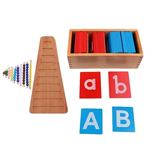 - ? Montessori Material Toy Letter A-Z Sandpaper Alphabets Board + Montessori Math Materials Colored Bead Stairs With Tray Early Training Toys