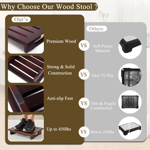 • ? Elegant Room Decor & Good Gift – The step stool made of thick oak wood with nice painted mahogany color. The stylish outlook & easy carry design makes it not only a good helper in daily life but can also add a good touch in the living room. Good gift for family members!