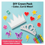 This DIY Crown Pack for Kids is a fun, printable craft activity that lets children color, decorate, and wear their very own paper crowns! Designed for both boys and girls, this easy-to-use pack encourages creativity, fine motor skills, and imaginative play.