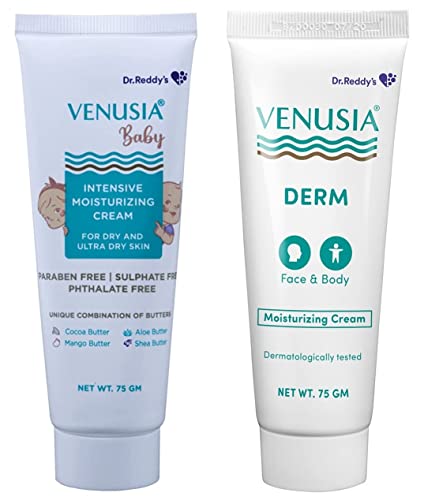 - No.1 Dermatologist Recommended: Due to its clinically proven ingredients and gentle formulation, the Venusia Baby Intensive Moisturizing Cream and Venusia Derm Moisturizing Cream are recommended for both babies and adults.