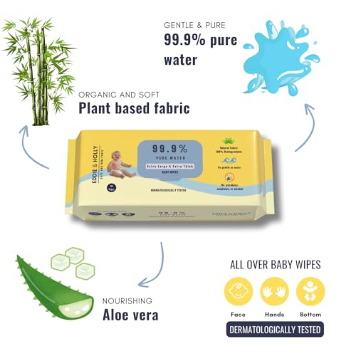 - 99.9% Water with Aloe Vera: Our Eddie & Holly Baby Wipes are made with 99.9% pure water and a drop of aloe vera, providing gentle cleansing and soothing for your baby's delicate skin. Perfect unscented water wipes for baby's sensitive skin.