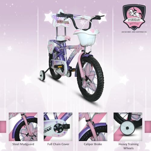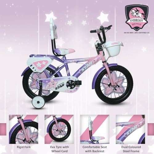 Be the first to review “EVERREADY Star Kids Bicycle – Newly Launched with Tubeless Tyres, Dual-Colored Steel Frame, Front Basket & Water Bottle (Light Pink-Purple, 16T)”