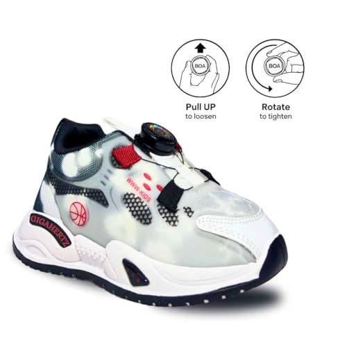 Gigahertz Kids Sports Sneakers with BOA Dial | Lightweight Running & Casual Shoes for Boys & Girls | Comfortable, Breathable & Stylish Sneakers for Kids (BLACK, UK Footwear Size System, Little Kid, Age Range, Medium, 3.5 Years, 4 Years)