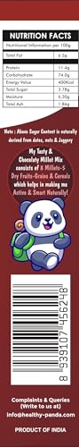 Be the first to review “HEALTHY PANDA Choco Millet Nutrition Drink for Kids 400g | No Added Sugar | 8 Millets & 5 Dry Fruits | Supports Overall Growth | 100% Fresh & Natural | Healthy Chocolate Drink for Children” Cancel reply