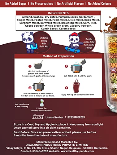 HEALTHY PANDA Choco Millet Nutrition Drink for Kids 400g | No Added Sugar | 8 Millets & 5 Dry Fruits | Supports Overall Growth | 100% Fresh & Natural | Healthy Chocolate Drink for Children