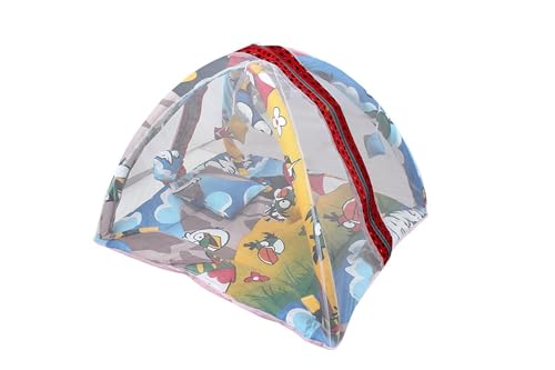 HOMECRUST Baby Bedding Set Glace Cotton 200TC Fabric || Playmat New Born Baby Kids Bed with Mosquito net Quilt and pillow|| color – Blue || 1 piece || Gift set