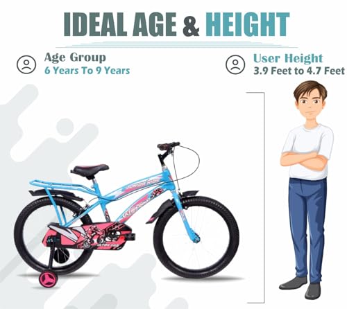 JUNIOR KID 20 Inch Ulra Model Cycle for Kids Bicycle for Boys and Girls 7 to 10 Years with Puncture Proof Tyres, Adjustable Seat and with Training Wheels