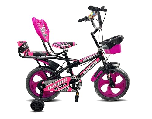 Kaashnic Kids Cycle 14T with Training Wheels Double Gaddi (90% Assembled) for Boys and Girls (Pink)