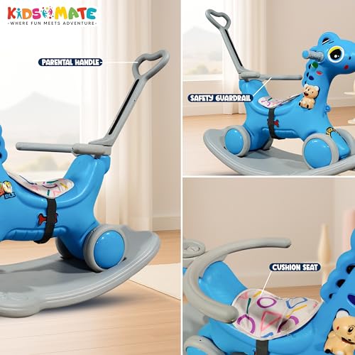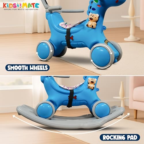 Kidsmate 3-in-1 Push Ride-On and Rocker for Kids 2-5 Years | Ride, Push & Rock Modes | Seat Belt Safety | Non-Toxic & PE Body with Parental Handle | Rocker Horse for Babies (Blue)