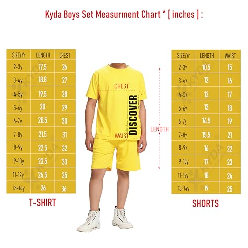 KYDA KIDS® Boy's 100% Pure Cotton Premium Printed Yellow Tshirt and Shorts Set for Summer (2-3 Years)