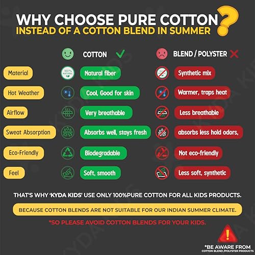 • KYDA KIDS brings you a perfect blend of fashion and functionality, making this 100% pure cotton set an essential addition to your child's summer wardrobe for a season of fun and comfort.