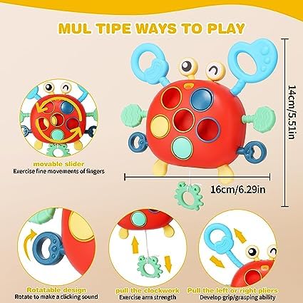 • ?Unique Ddesign- Baby & Toddler Toys?Montessori toys for 1 year old boy hook on the bottom can not only pull up and down, make sounds and the crab's eyes wiggle and attract the baby's attention, but also easy to hang. You can hang the crabs toddler travel toys for toddlers 1-3 on the baby seat, car seat, plane,strollers or even cribs.