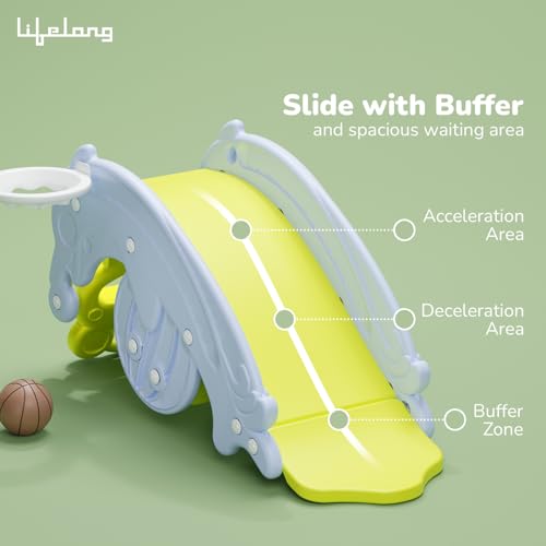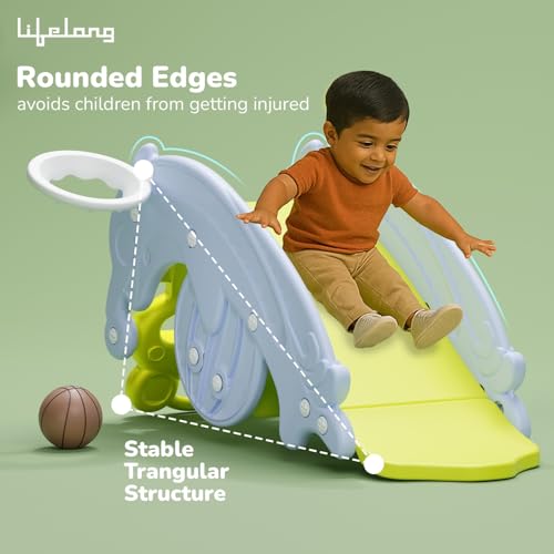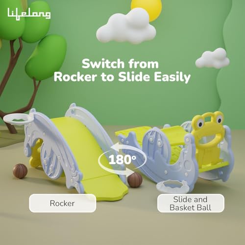 Lifelong 3 in 1 Modern Slide & Rocker with Basketball for Kids|Durable & Safe Playset for Toddlers & Children|Indoor & Outdoor Use|Easy Assembly & Perfect for Fun & Activity (LLCCRS01),Multicolour