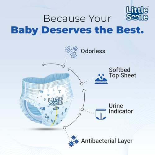 Be the first to review “Little Smile Baby Diapers Pant Style with Fast Absorption Core Soft Top Sheet, Wetness Indicator and Antibacterial Layer | Medium (7-12 KG) | Pack of 1 | 70 Pieces”