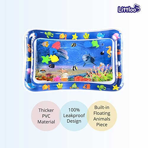 Littloo Baby Leakproof Inflatable Water Playmat for Happy Tummy Time Portable Outdoor & Indoor Fun Learning Activity with Floating Toys for Stimulation Growth for Babies Kids Toddlers,Pack of 1,Blue