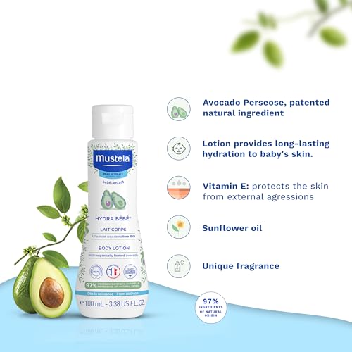 Mustela Hydra Bebe Body Lotion 100ml | Baby Cream & Moisturizer for Face & Body | Baby Body Lotion for Newborns 0–5 Years | Organic Skincare | Ideal for Normal Skin