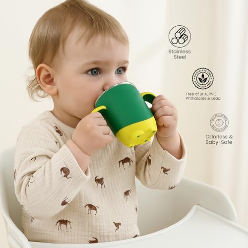 ONE AND ONLY Baby Sippy Cup | Stainless Steel Spill Proof Training Cup & Water Bottle with Handle | Toddler & Kids Milk Cup Feeding Bottle | BPA-Free Baby Drinking Cup (Green)
