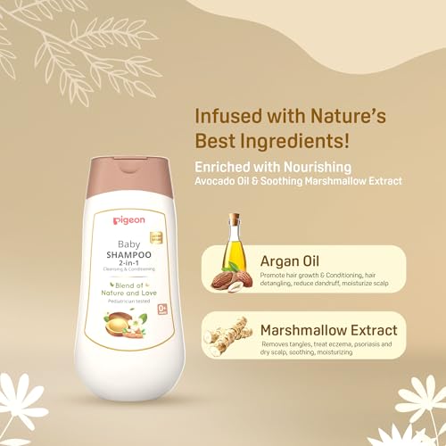 Pigeon 2-in-1 Baby Shampoo For Cleansing & Conditioning, Enriched With Avocado Oil & Marshmallow Extract, Parabens Frew, SLS & SLES Free – 200 ml