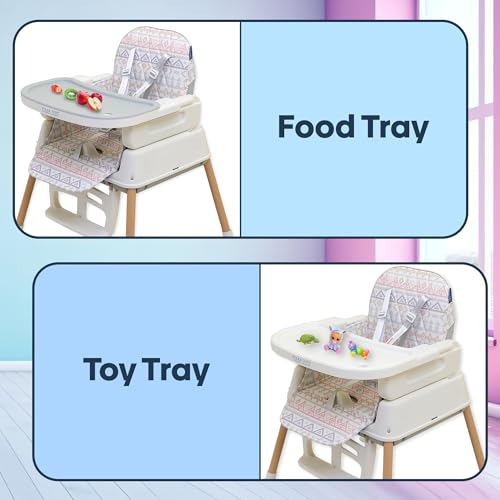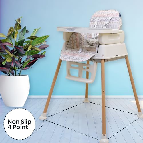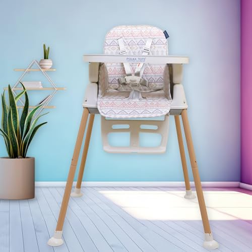 POLKA TOTS 4 in 1 High Chair for Baby (Geometric Print), Multiple Recline Position with 7 Adjustable Height Level, Detachable Feeding Tray for Toddlers with Footrest, Extra Cushioning & Wheels