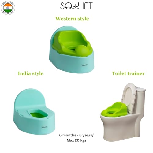 Pottychair (Green) Sqwhat 3-in-1 Indian/Squat style and western style potty chair, with an adaptable toilet seat/adapter with removable collection tray, 12 months to 6 years or max 20kgs/110cms tall