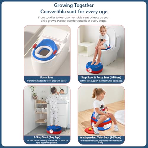 StarAndDaisy Plastic Potty Seat For Kids 1-5 Years / 3-In-1 Baby Toilet Training Seat With Anti-Skip Pads, Removable Potty Pot, Potty Training Seat For Baby & Kids. (Blue-Red)