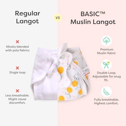 - Newborn’s 1st Langot: Crafted from 3 layers of premium Muslin fabric, it’s incredibly soft, gentle, and breathable, making it perfect for a newborn's delicate skin. It's designed for easy washing and drying, ensuring convenience and comfort in all weather conditions.