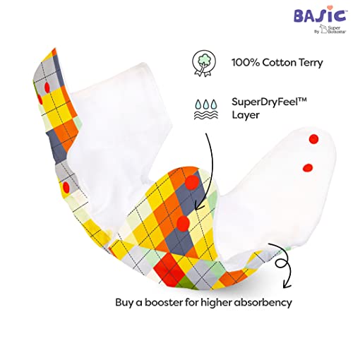 superbottoms Basic Pack Of 4 Assorted Cloth Diaper For Baby & 1 Dry Feel Langot (Fits 0-5 Kg)|Washable & Reusable Cotton Diaper For 0-3 Yrs|Freesize,Adjustable|Reduces Rash|With 4 Quick Dry Pad/Insert