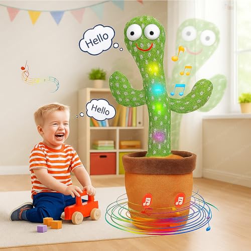 - Perfect Gift: Perfect gift for your kids or friends. This funny toy will definitely make people who receive it laugh! It can record what you say and keep playing. Dancing Cactus Plush Toys, Toys for Babies Toddlers Kids 3 Months and up, It can also as a room decoration. Cheerful music and dancing are very suitable for creating a pleasant atmosphere and for hosting parties. Gifts for 1, 2, 3 Year-Old girls and boys. It is also a nice adults stress relief toy and educational toy for kids.