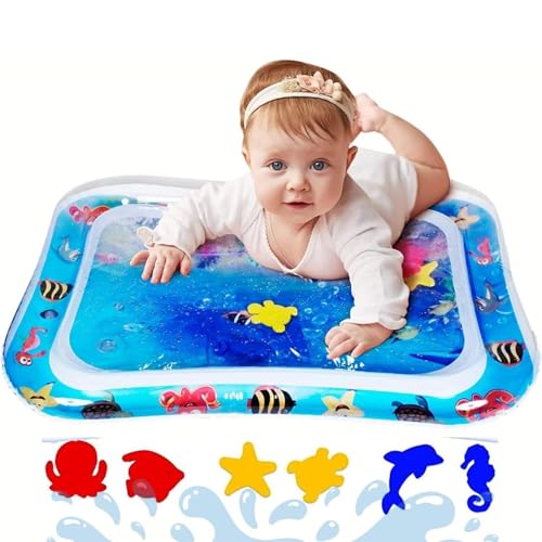 • ?? TRU TOYS Tummy Time Water Mat: We guarantee a highly reliable kids-safe Water Play Mat for Babies. The Fun Water Mat for your Baby or Toddler with bright colors, adorable floating Fish toys inside, and splashing sounds will help your baby learn to play happily and interact with its environment at an early age, making your baby’s tummy time easier and happier.