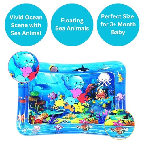• ?? Perfect Water Mat Design: The brightly colored sea animals and eye-catching illustrations will keep your baby entertained for hours. It has an ideal size of 60 x 50 cm which is suitable for all baby girls or boys over 3 months old to crawl and relax their tummy.