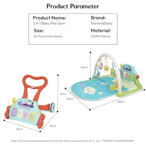 • Versatile Baby Play Gym Mat & Learning Walker: Our Baby Play Gym Mat & Baby Learning Walker offers endless hours of stimulating fun for babies aged 0-12 months.