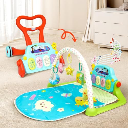Uonibaby by StarAndDaisy 2 in 1 Musical Baby Walker 0 to 24 Months Baby Boys & Girls with Convertible Play Gym Mat, Play Gym Walker with Paino, Hangning Toys.