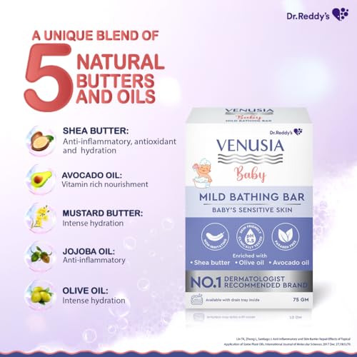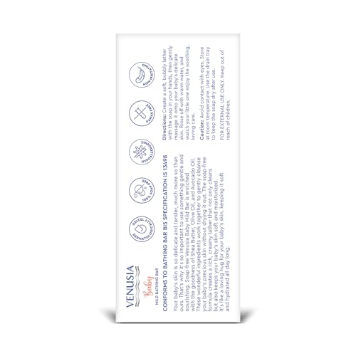 Venusia Baby Mild Bathing Bar | Non-irritating, pH 5.5 and Paraben Free | Enriched with Shea Butter, Olive Oil and Avocado Oil| Dermatologist recommended no 1 brand | 75g