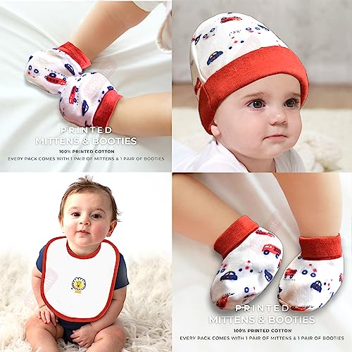 VParents Newborn Baby Gift Set of 5 Items,Open Half Sleeves Jhabla Vest- Tshirt,Pajama Pants,Cap,Mittens and Socks,Cottony Soft,Skin Friendly, 0-3 Months