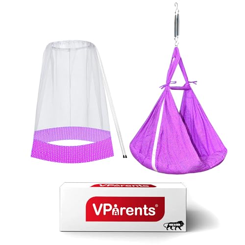- VParents Infant New born Hanging baby Cradle is Made up of 100% cotton fabric and comes with quality soft see through mosquito net which protects your baby from mosquitos and also allows easy air flow.