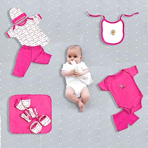 VParents Newborn Baby Gift Set of 5 Items,Open Half Sleeves Jhabla Vest- Tshirt,Pajama Pants,Cap,Mittens and Socks,Cottony Soft,Skin Friendly, 0-3 Months